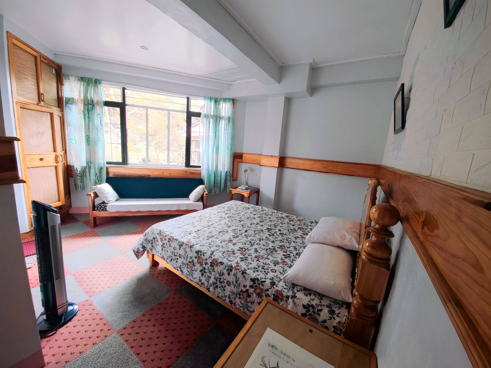 Our upper room (Layad) features warm wood throughout, while lower rooms, apart from the basement level, have carpet and parquet flooring—perfect for cozy bed weather from November to February and June to September rains.
